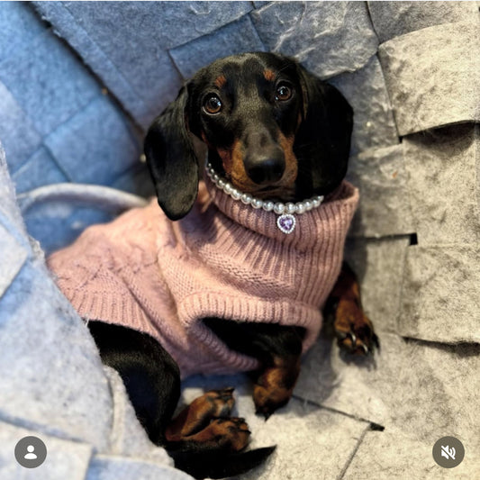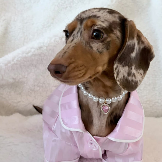 Royal Pearl Pet Necklace – Blush Pink Heart Pendant | Chic Jewelry for Stylish Pets