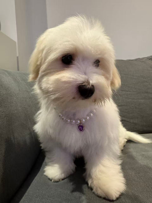 Royal Pearl Pet Necklace – Lavender Heart Charm | Chic & Cute Pet Jewelry