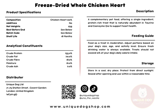Unique Dog Freeze-Dried Whole Chicken Heart