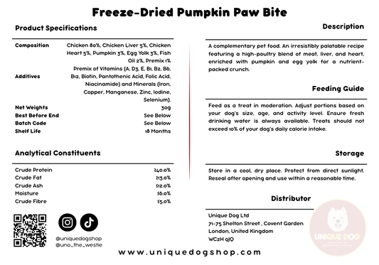 Unique Dog Freeze-Dried Pumpkin Paw Bites