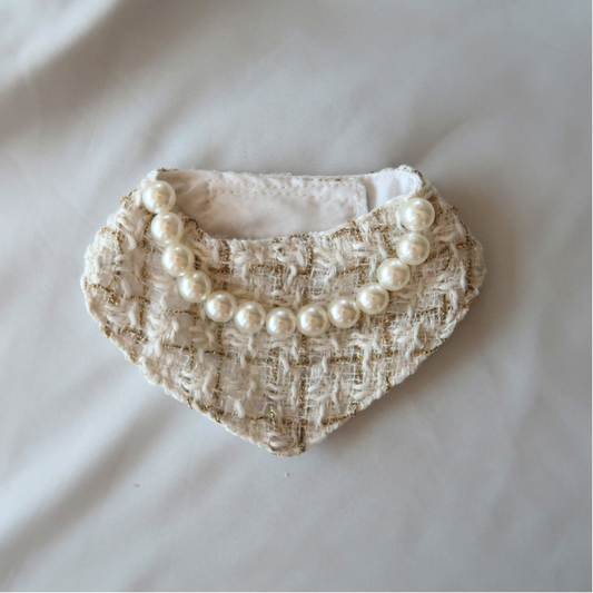 Chanel-Inspired Pearl Pet Bib – Cream Bouclé Elegance for Small Pets