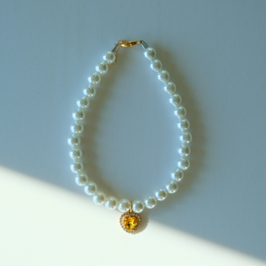 Royal Pearl Pet Necklace – Golden Heart Gem | Luxury Jewelry for Dogs & Cats