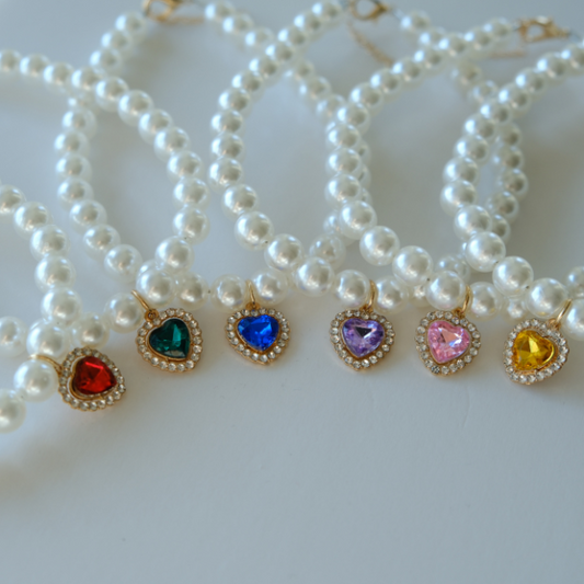 Royal Pearl Pet Necklace – Blush Pink Heart Pendant | Chic Jewelry for Stylish Pets