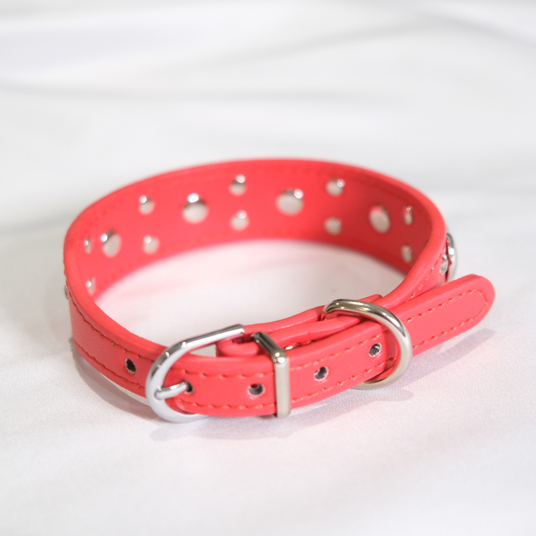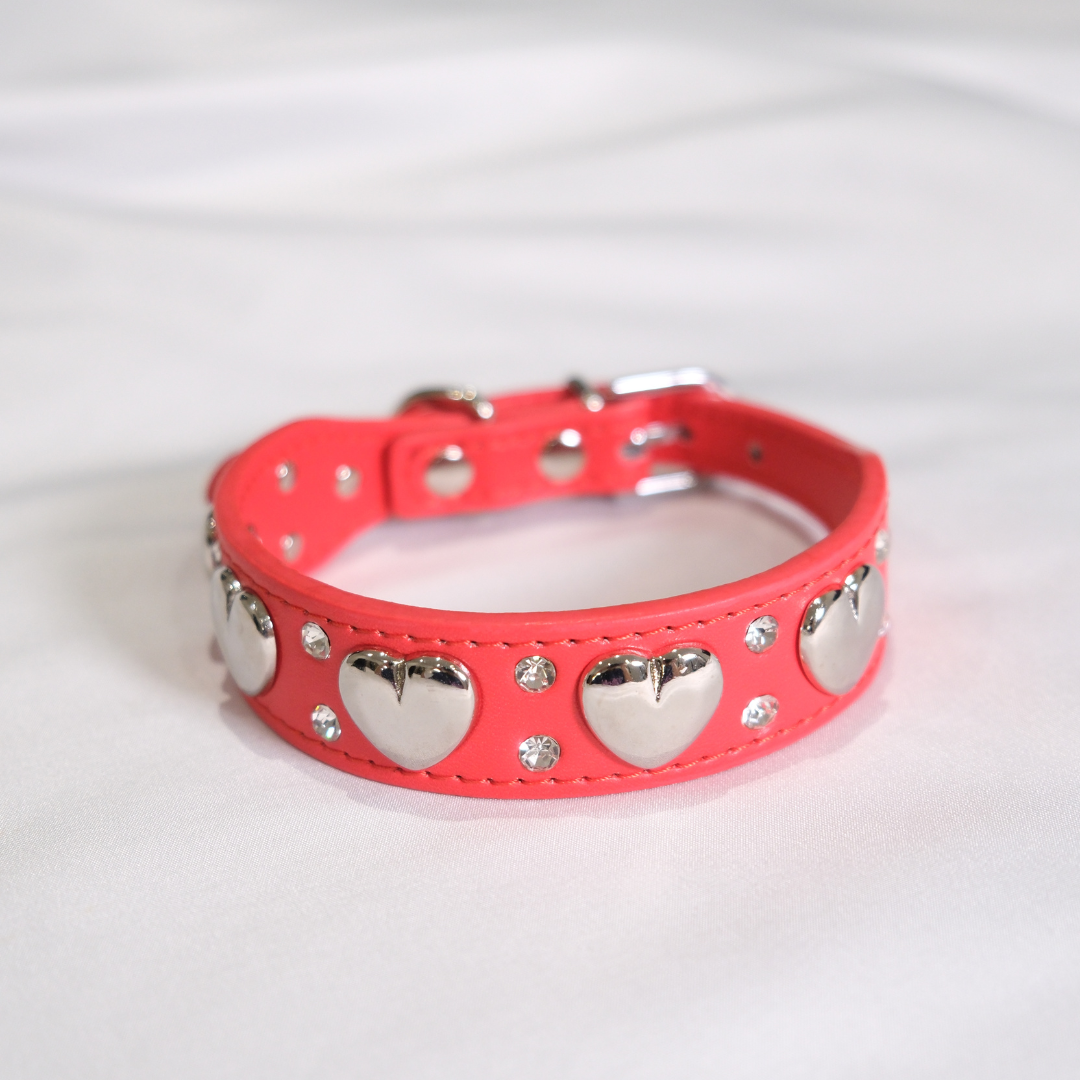Turn up the charm with this vibrant red collar, embellished with silver 3D hearts and rhinestone accents. Eye-catching and unique, this collar adds flair to your furry friend’s daily walks or festive photoshoots.