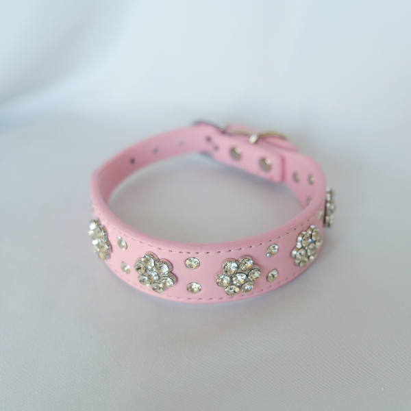 Treat your furry fashionista to this Pink Bling Dog Collar, featuring soft faux leather in a sweet pink hue and decorated with sparkling crystal flower embellishments. It’s the perfect mix of cute and glam for pups who love to turn heads.