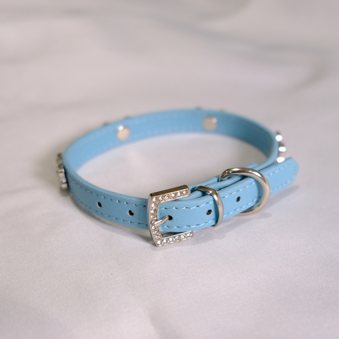 This sky-blue collar is the perfect mix of sparkle and durability! Decorated with dazzling bone-shaped rhinestone charms, it’s designed for pets who love to shine. Made from quality PU leather with a secure rhinestone buckle, it’s as stylish as it is functional.