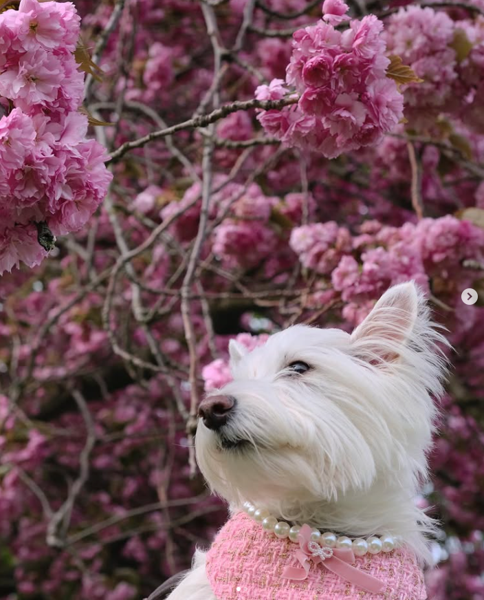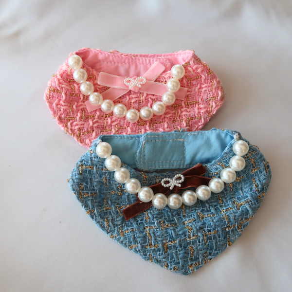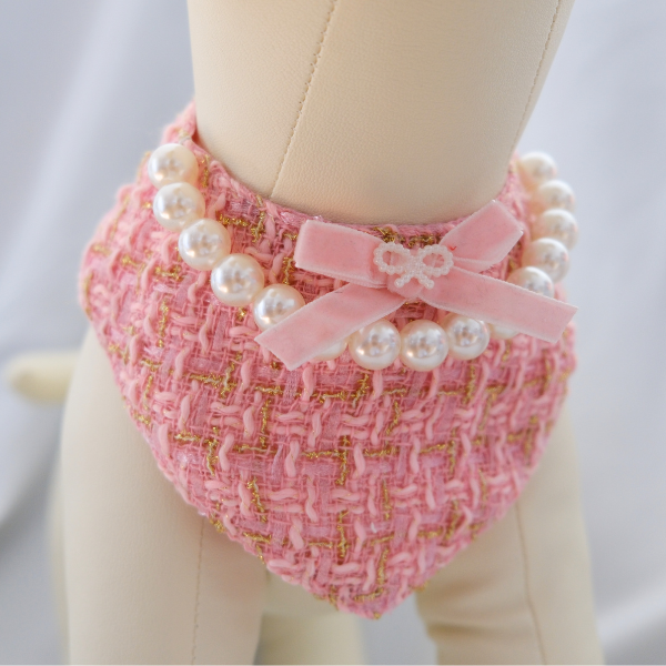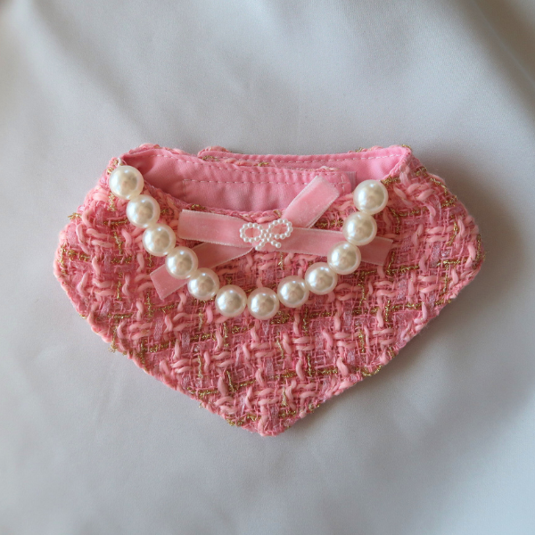 Dress your furry friend in timeless elegance with this Chanel-inspired pink pet bib.