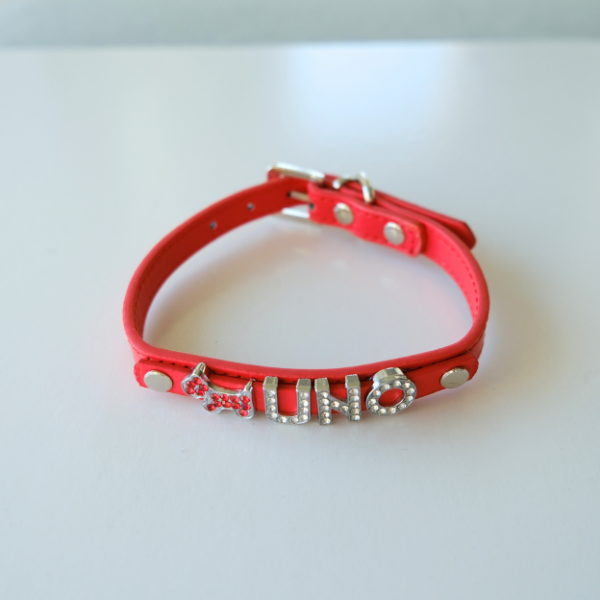 Add a personal touch to your pet’s style with our DIY Custom Dog Collar – a fun and fashionable accessory for your furry friend! Designed with a sleek flat PU leather strap and sparkling rhinestone buckle, this collar allows for interchangeable letter charms (sold separately) so you can spell out your pet’s name or message.