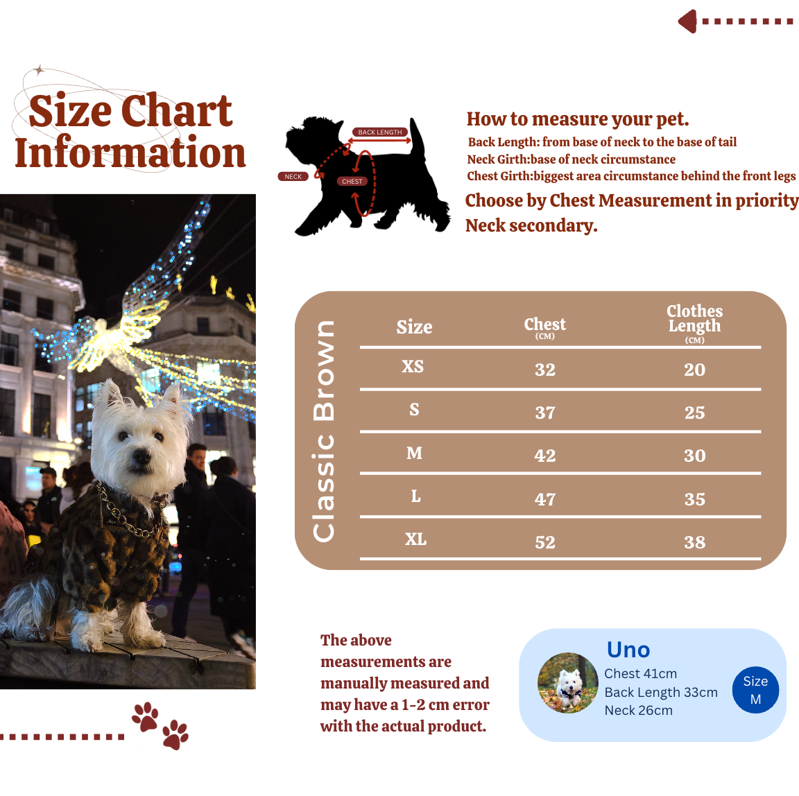 Featuring a bold leopard print that adds a dash of glamour to any outing, this furcoat is available in six sizes to accommodate both small and grand pets alike. Perfect for city strolls or festive gatherings, it not only keeps your pet cozy but also turns heads with its chic design. Available in two classic colors, this furcoat is the ultimate blend of fashion and function for the stylish pet.