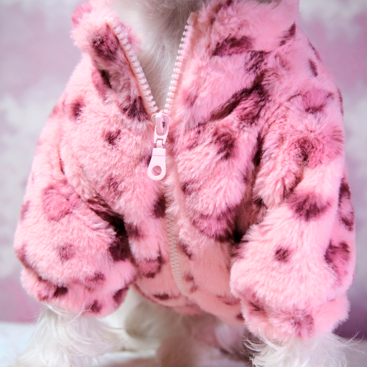 Let your pet step out in unbeatable style with our Bubblegum Pink Leopard Furcoat. Designed to provide warmth with a touch of playful chic, this coat is crafted from plush faux fur adorned with a vibrant pink leopard print. Its soft texture ensures comfort during even the chilliest weather, while the eye-catching pattern guarantees your pet remains the center of attention.