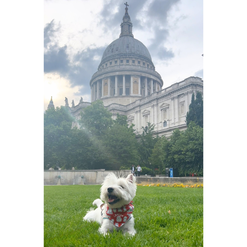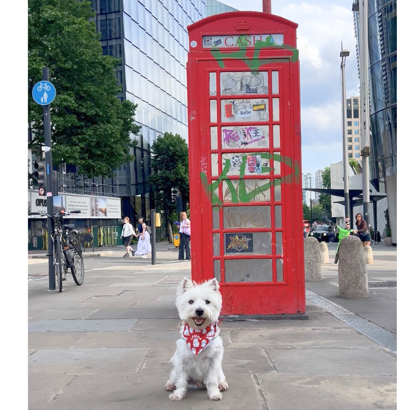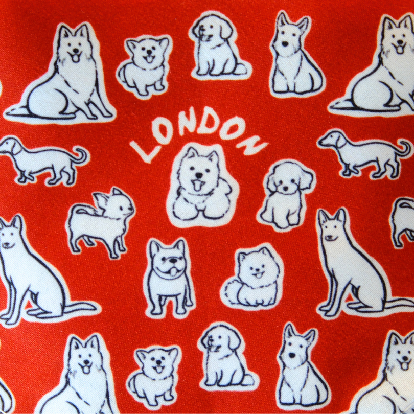 This is not just any accessory — it’s a celebration of the vibrant canine community that makes London bark. Featuring hand-drawn illustrations of real pups who roam the parks, markets and pavements of this iconic city, the print showcases breeds you’re likely to spot on a stroll through Hyde Park or by a red phone booth. From cheeky Westies to proud Frenchies and playful Pugs — they’re all here, sharing the spotlight with our own Uno, the spirited little dog who inspired it all.
