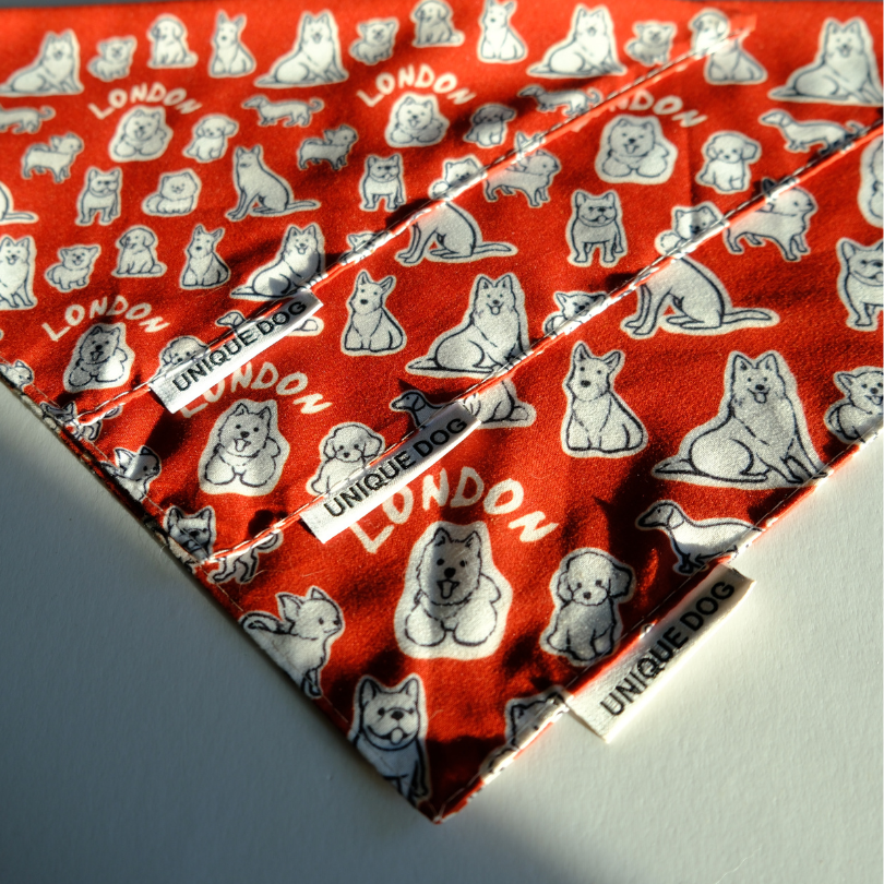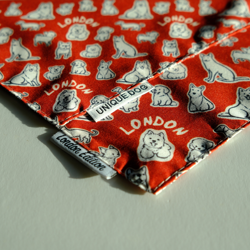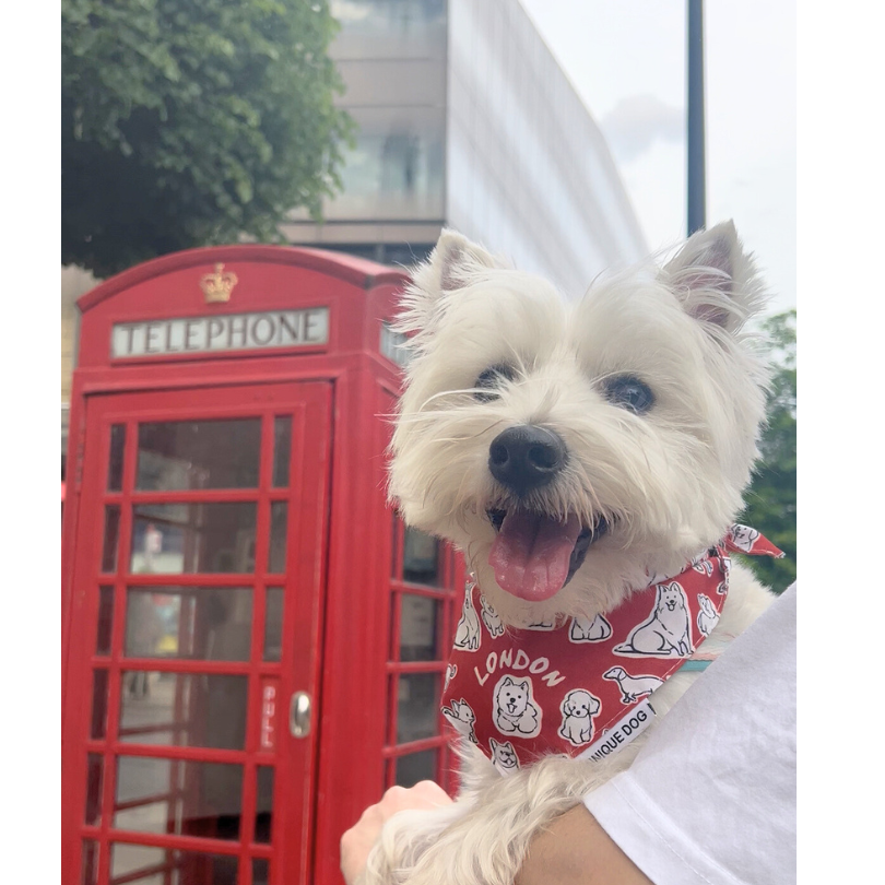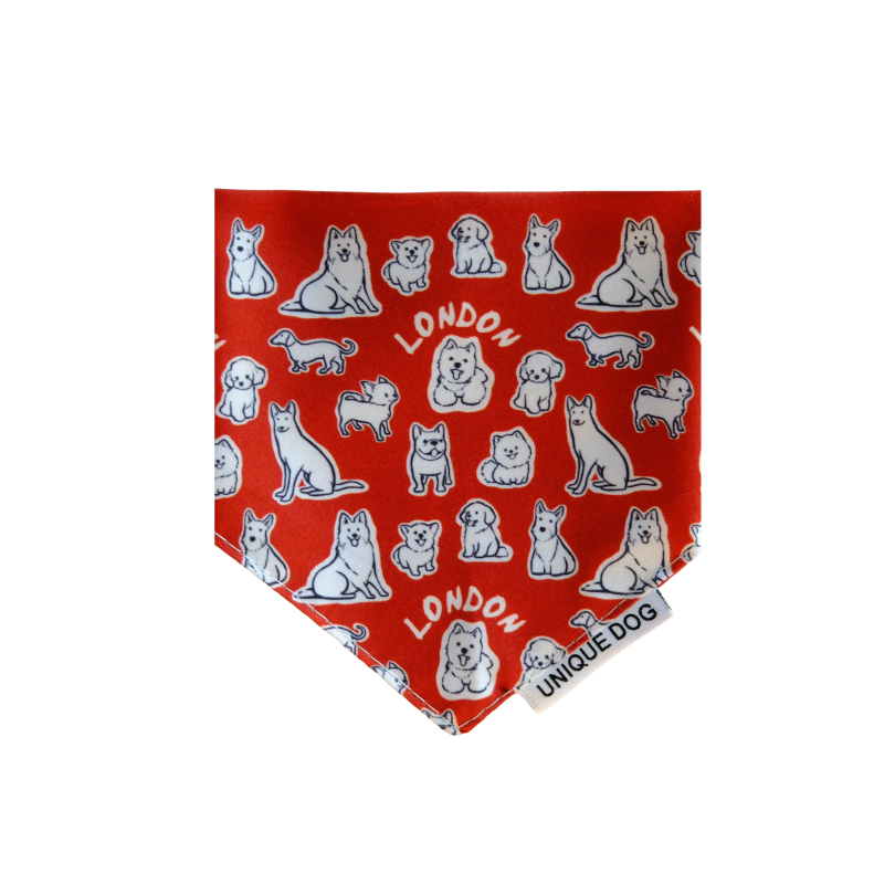 Wrapped in bright red and buzzing with character, the London Attitude Bandana brings together the city’s diverse, lovable four-legged personalities. Uno might be the spark, but every pup on this bandana has a story — just like the dogs of London.