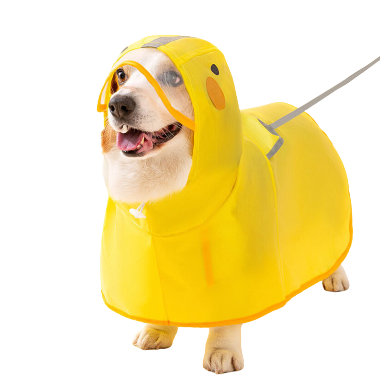 Bring a splash of fun to rainy days with our Quacky Duck Hooded Dog Raincoat. This vibrant yellow raincoat is not only a visual treat but a practical choice for keeping your pup dry and cozy in wet weather.