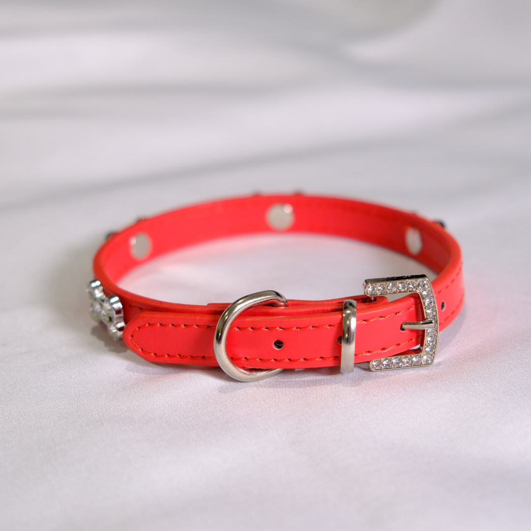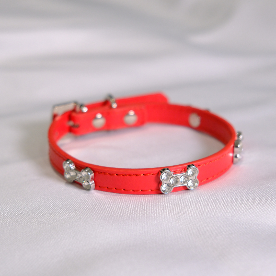 Turn heads with this fiery red collar, decorated with sparkling bone charms. Ideal for festive occasions or daily walks, it’s crafted from PU leather for a lightweight, secure, and stylish fit.