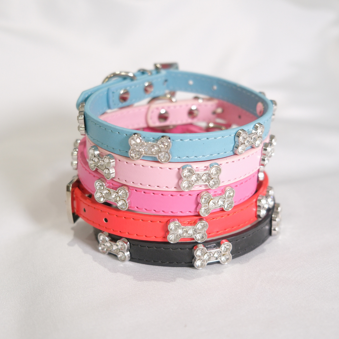 Classic black meets playful sparkle in this collar adorned with rhinestone bone charms. Chic, versatile, and durable—this is the ultimate go-to collar for stylish pets.