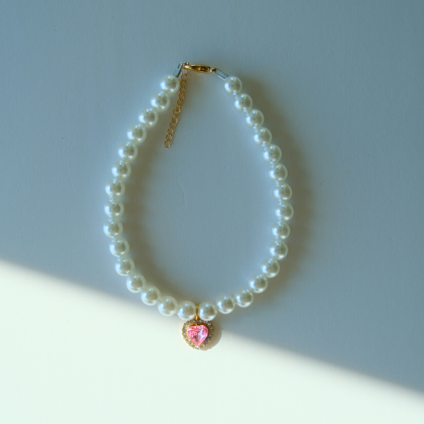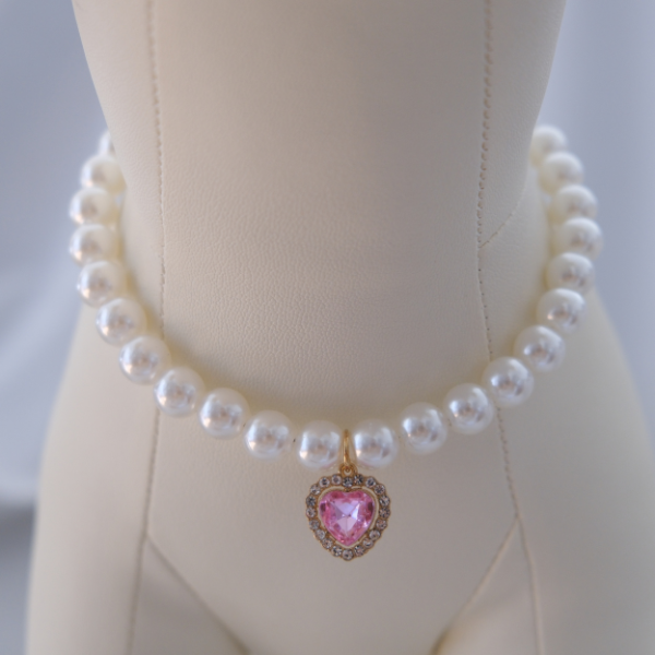 Soft, sweet, and full of charm – this Blush Pink Pearl Necklace is the perfect accessory for your fur baby’s feminine flair. Featuring glossy pearls and a pastel pink heart gem, it brings an air of grace and cuteness to any occasion, from pet parties to professional photoshoots.