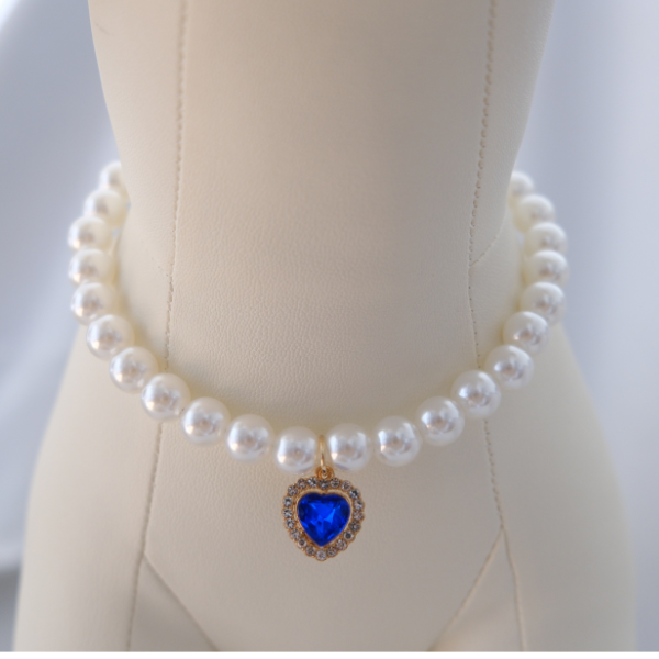 A touch of Titanic glamour for your beloved pet! This Sapphire Blue Pearl Necklace features luminous faux pearls and a royal blue heart charm that evokes timeless elegance. Whether for a birthday, formal event or a glam photoshoot, your furry friend will shine like true royalty.
