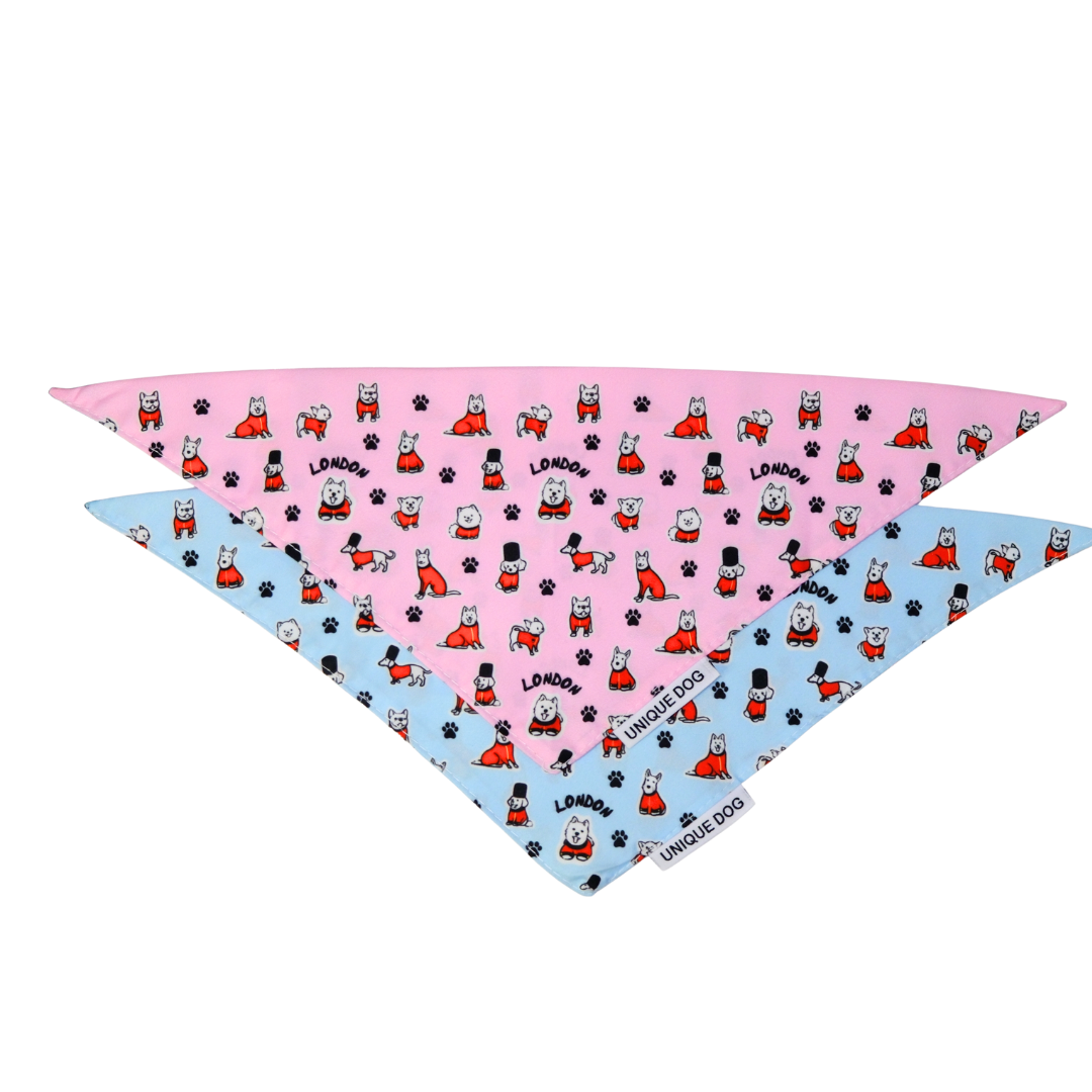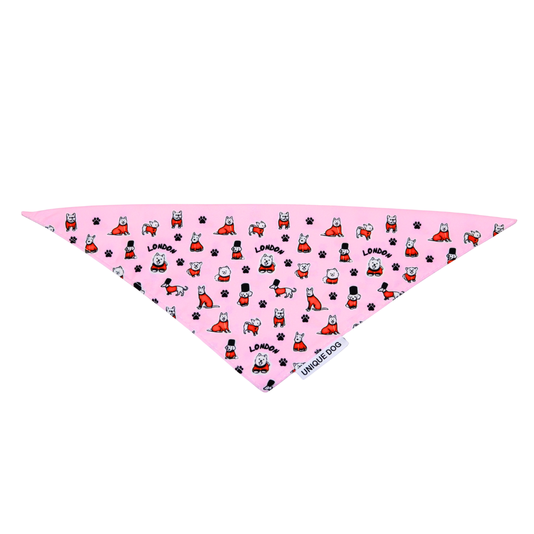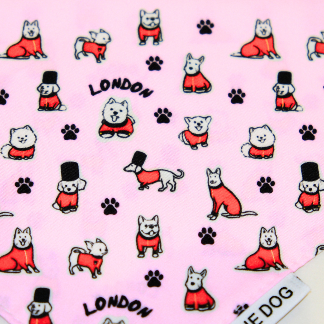 Covered in adorable hand-drawn dogs wearing classic London guard uniforms, this bandana celebrates every pup’s right to rule the park runway. The soft baby pink shade adds a touch of sweetness, making it perfect for pups with a gentle heart and big personality.
