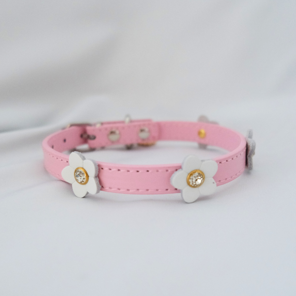 Sweet and feminine, this soft pink collar features white flower accents with sparkling centers—designed to add charm to any pup’s look. Crafted for small to medium-sized pets, it’s as functional as it is stylish.