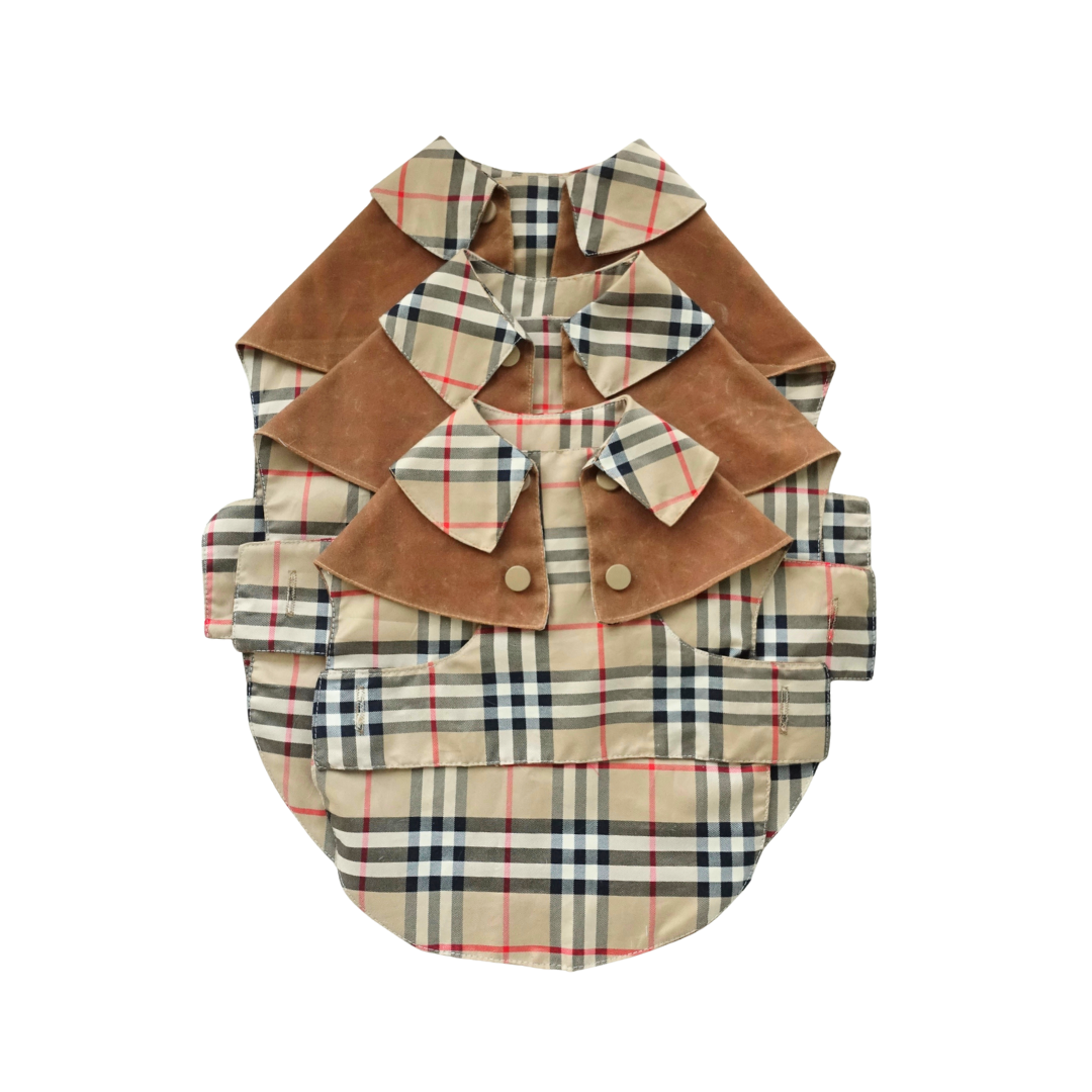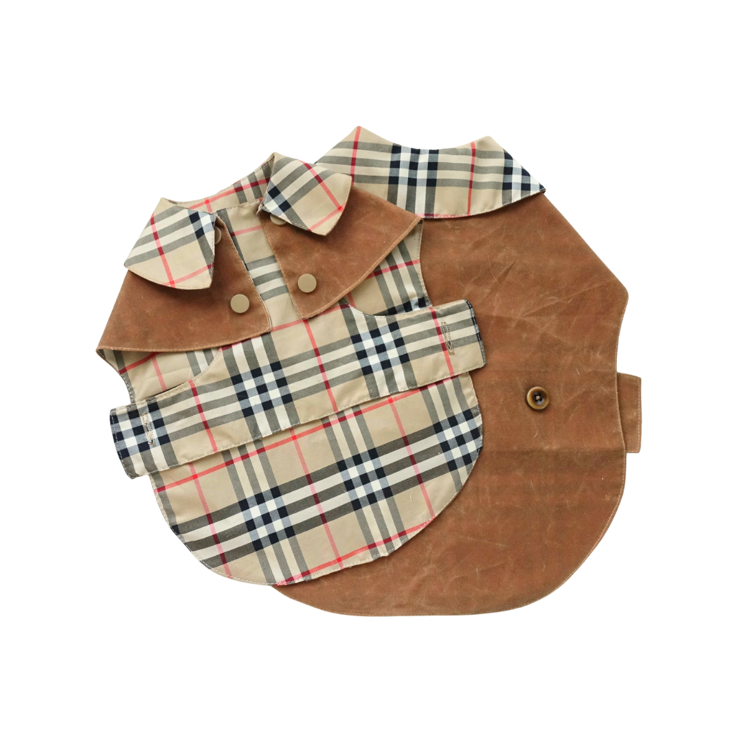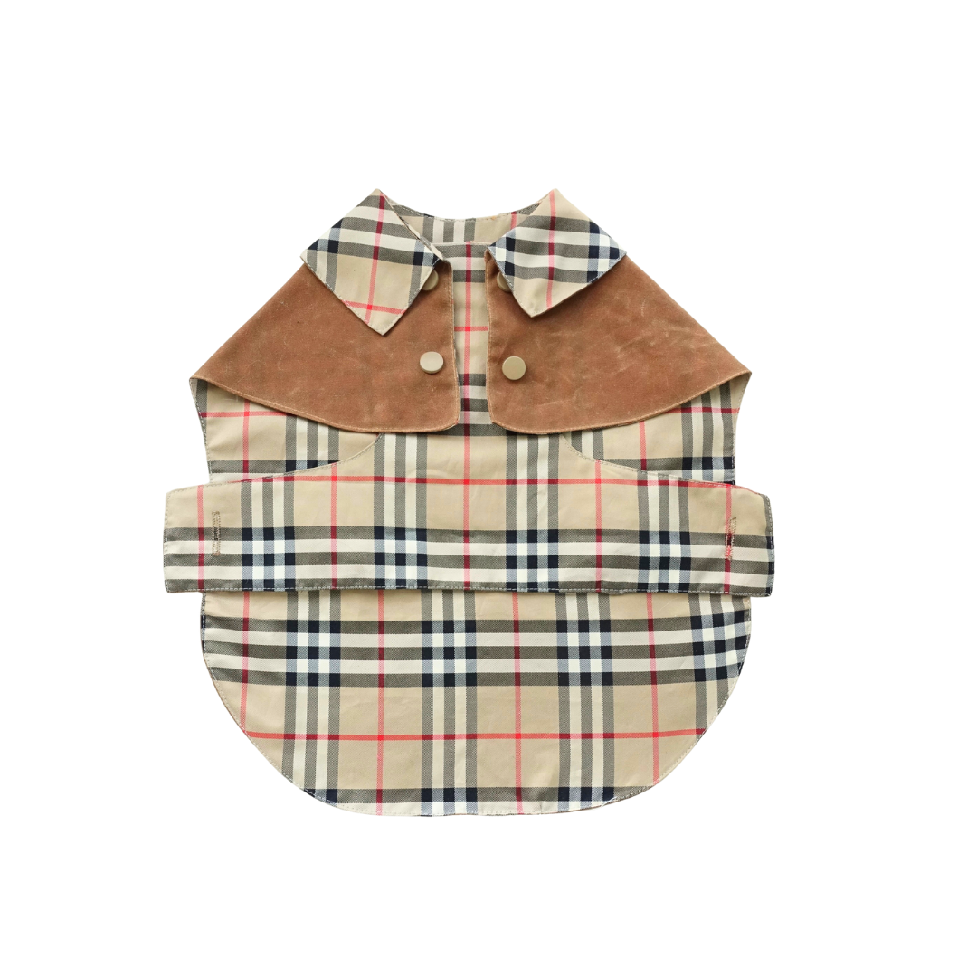 This distinctive dog coat combines vintage British charm with practical functionality. Made from waxed plaid fabric with a water-resistant finish, it’s designed for dogs who appreciate style and durability.
