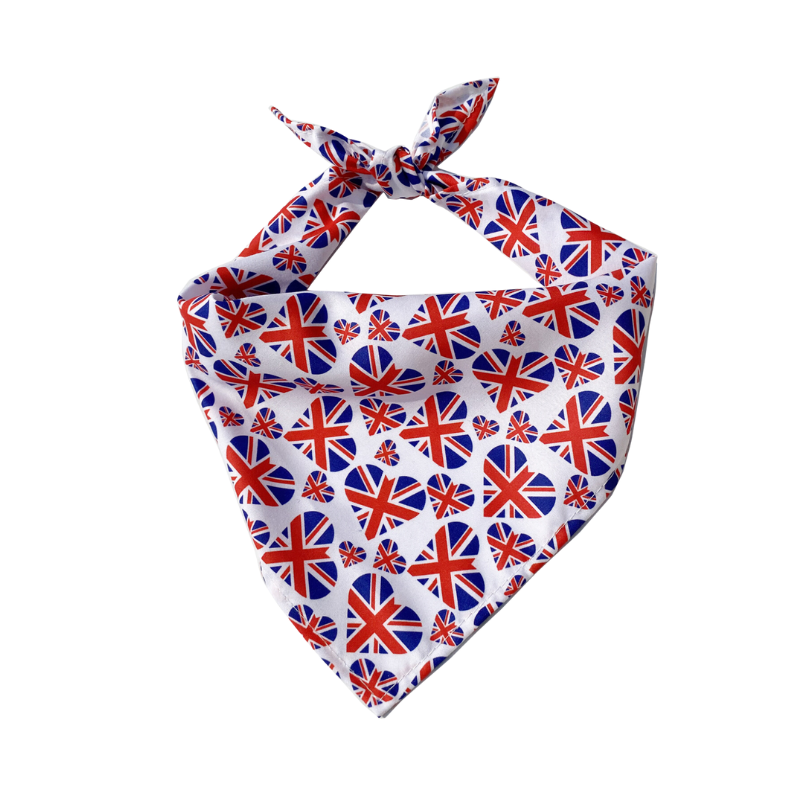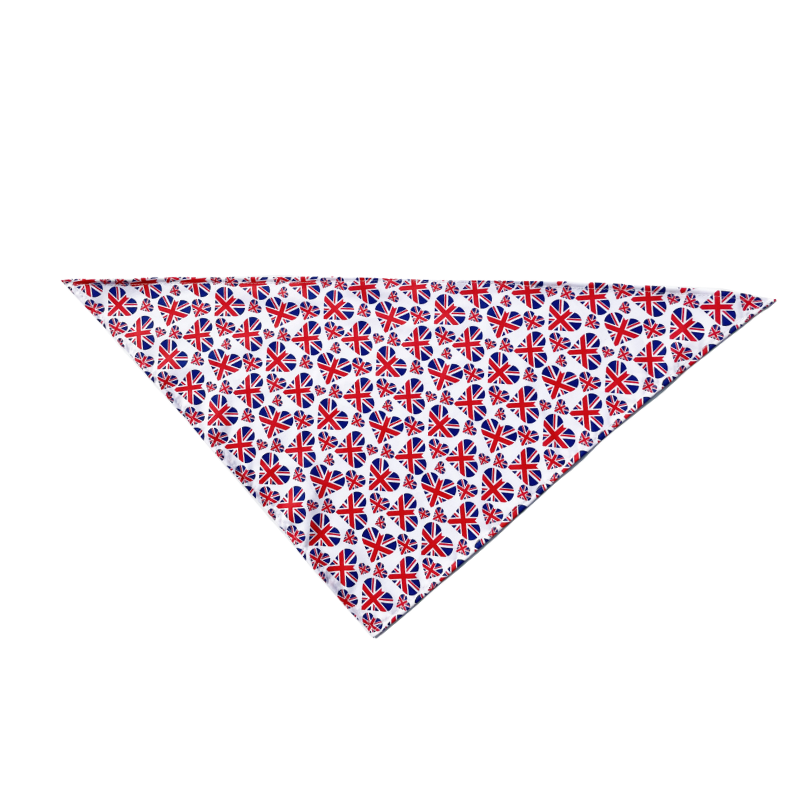 Add a splash of fun to your pet's wardrobe with our Union Jack Scatter Pet Bandana. Decorated with a playful scatter of mini Union Jack flags, this bandana is perfect for pets who carry a lighthearted spirit and a love for all things British. Its lightweight fabric ensures comfort, making it suitable for both indoor and outdoor activities.