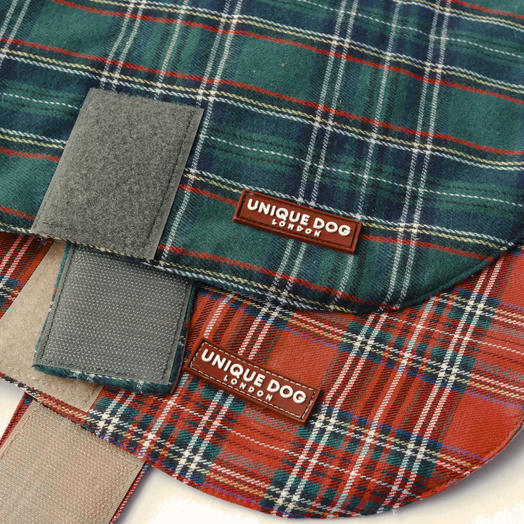 Rooted in classic British tailoring, this Unique Dog green tartan coat offers a refined take on heritage style for dogs.